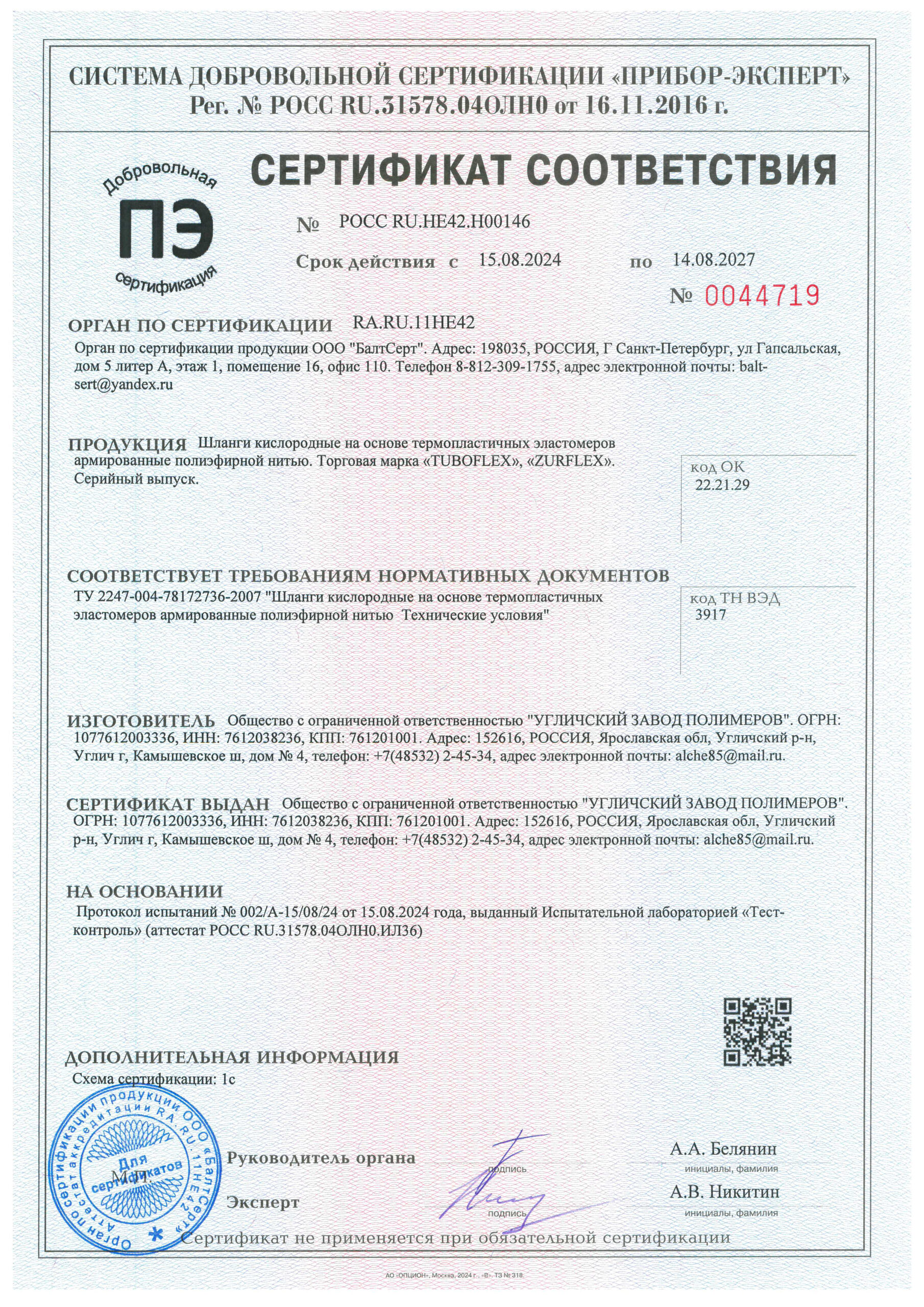Сертификаты и паспорта