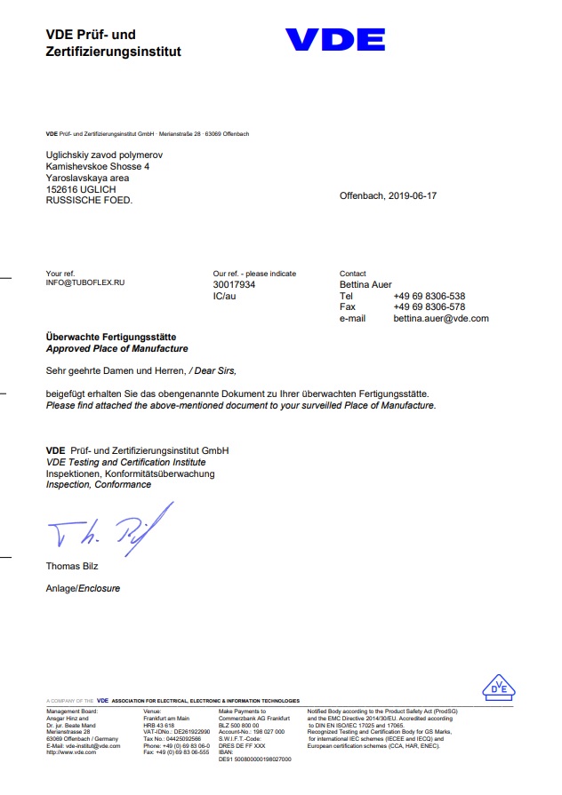 Качество подтверждено европейскими сертификатами VDE и IMQ
